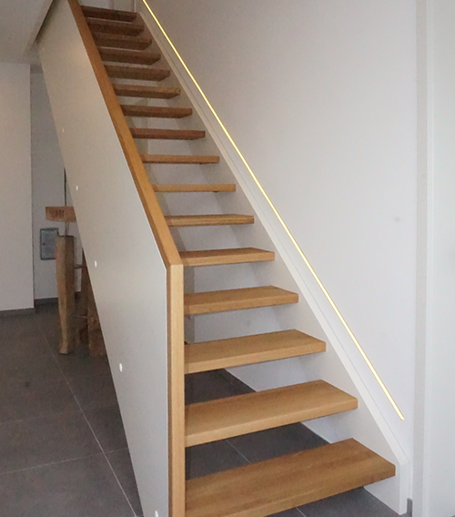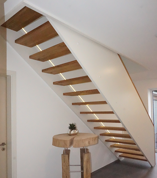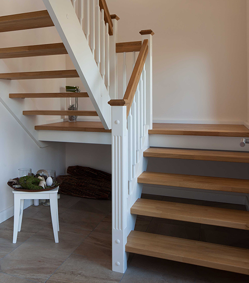 Wangentreppen sind klassische Treppen mit seitlich eingefassten Stufen. Sie bieten Stabilität und vielfältige Gestaltungsmöglichkeiten. Durch Material- und Farbkombinationen lassen sich Akzente setzen. Offene oder geschlossene Varianten passen sich flexibel an Ihre Raumgestaltung an.